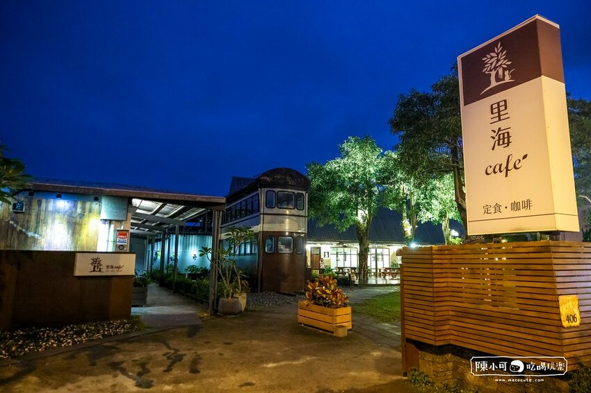 晚上的里海咖啡和白天有不同景緻,除了明顯的招牌,最顯眼的就是入口像香港叮叮車的裝飾,以前餐廳是小朋友遊樂區,不知道里海咖啡會變身成什麼呢?問了店家,他們說很歡迎其他人來租借前面場地,可以像市集擺盤~有興趣的請自行洽詢店家。