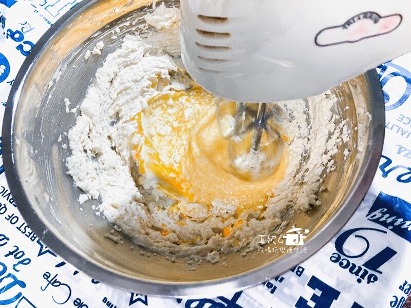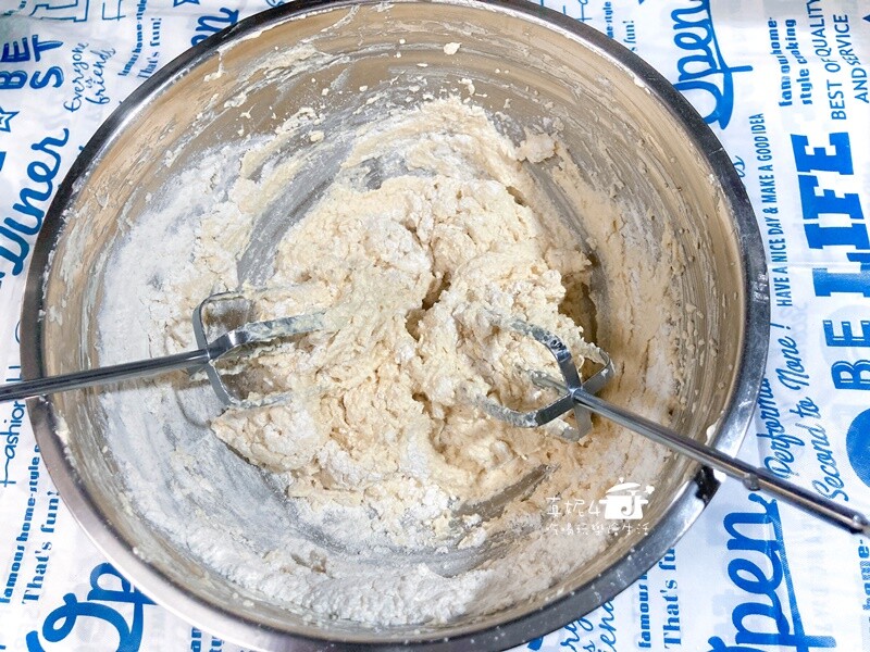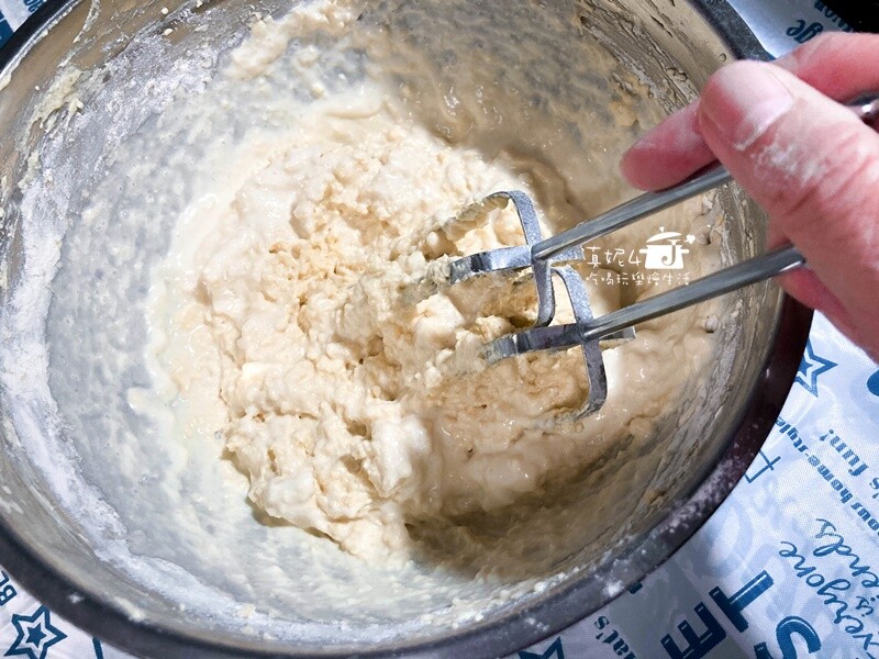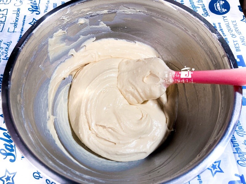 拌勻的技巧在於”分次加入”,不可以一次性加入材料(容易結塊就會增加融合的困難度)