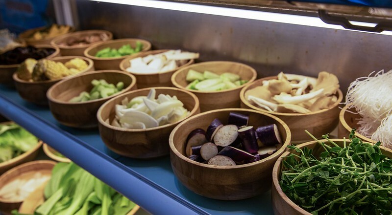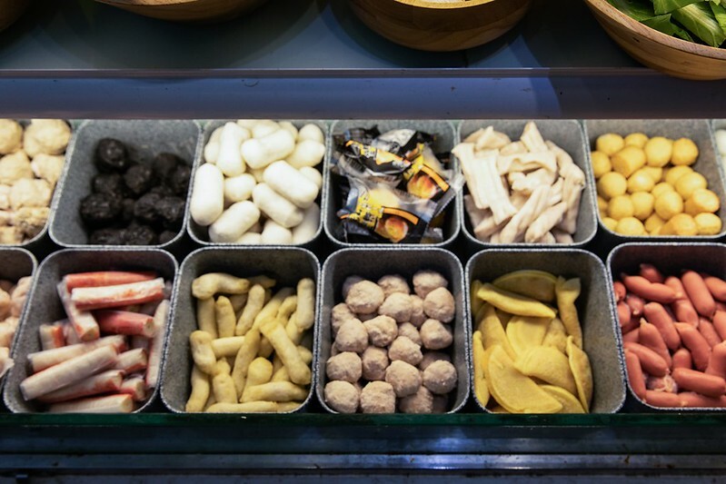 菜盤區可以自己組合想吃的,整盤都一種特定的食材也沒人管你,愛吃玉米,愛吃丸子盡管夾,個人特別推薦芋頭丸子頗好吃。