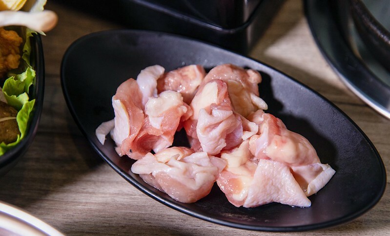 接下來,因為我專攻肉,所以就以肉品當介紹的主力,首先是去骨嫩雞腿肉,切成塊狀的帶皮雞腿肉,頗嫩甜度也很夠,甚至帶點咀嚼的微肉汁,不曉得是不是店裡靠近市場之故,不太像冷凍的雞肉,反而有一點像現殺的。