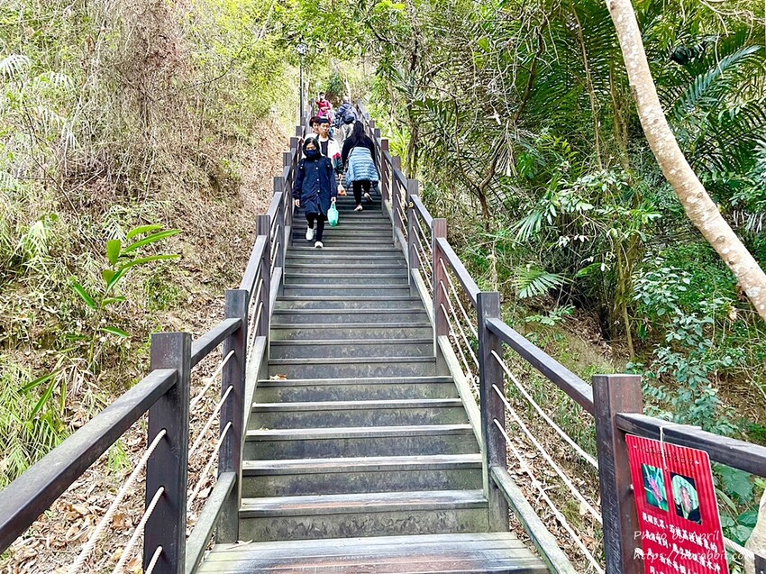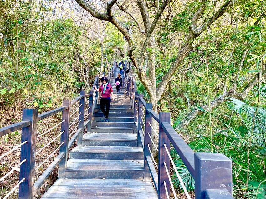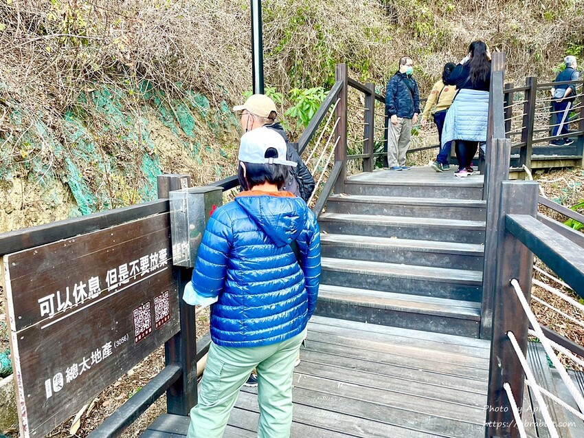 木棧階梯說長不長,說短不短,是蠻考驗肺活量和腳力的,大約爬階梯5分鐘左右就會看到一個休息站。