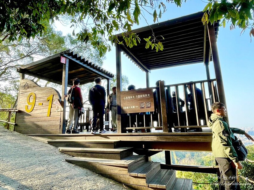 我爬到9-1終點,也就是照片上面那個涼亭,速戰速決只花了30分鐘。先說一下,有些人會選擇連結9號或者10號步道,這樣上下山沿途可以看到不同風景,但我們這天因為想說不要太晚回家,所以直接很沒創意的原路快速下山。
