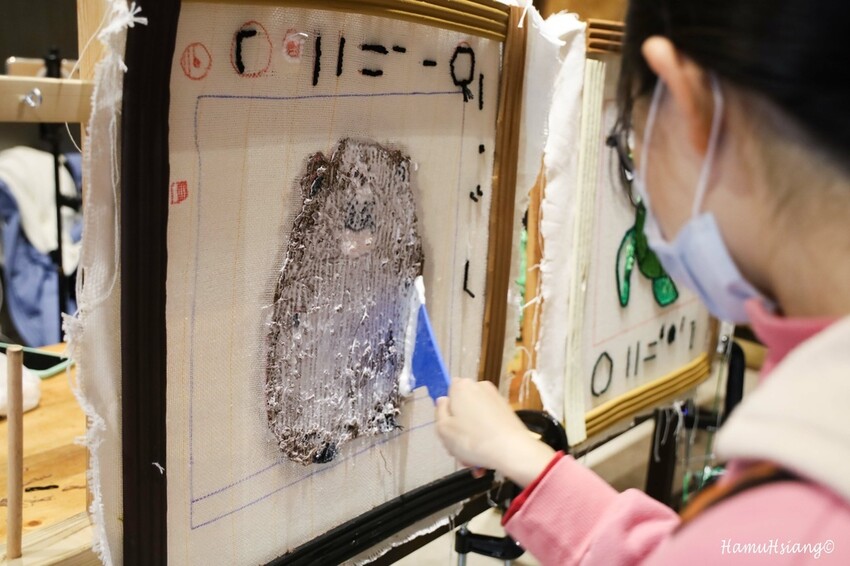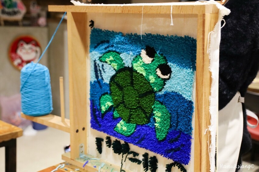 ▼店內還有客人把作品先放在這兒,這是一對情侶的作品,兩人一起相約來打地毯也是很浪漫