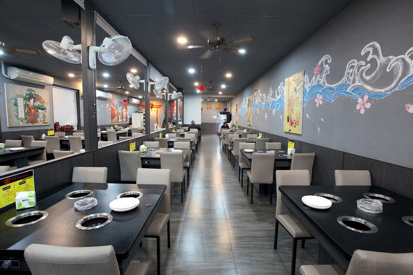 電動門打開室內空間超寬敞燈光很明亮,座位區格局有分左右兩邊位子供內用。
