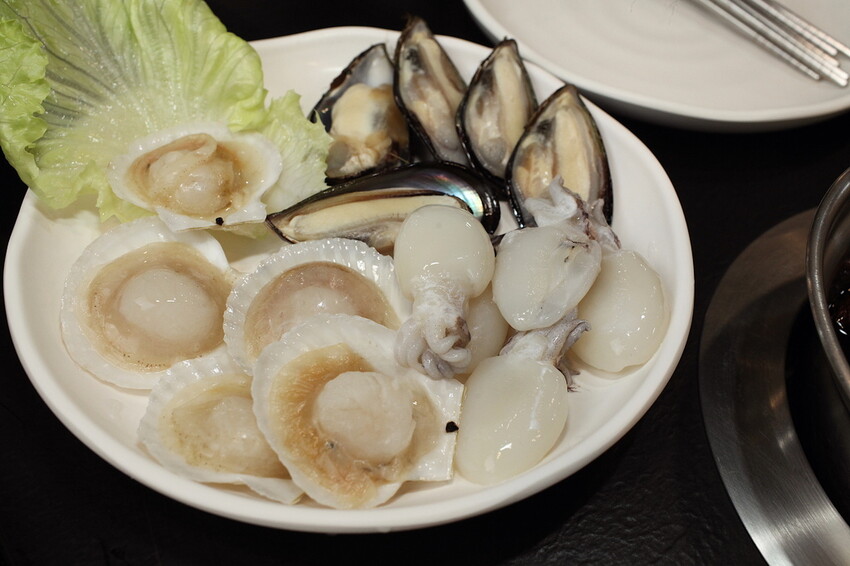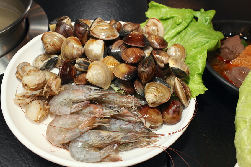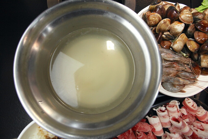這些海鮮就直接請服務員幫我送上2人份,尤其小高最喜歡喝蛤蜊鮮甜湯頭,點原味湯頭添加大量蛤蜊進去煮,就成為充滿海味蛤蜊火鍋湯底。
