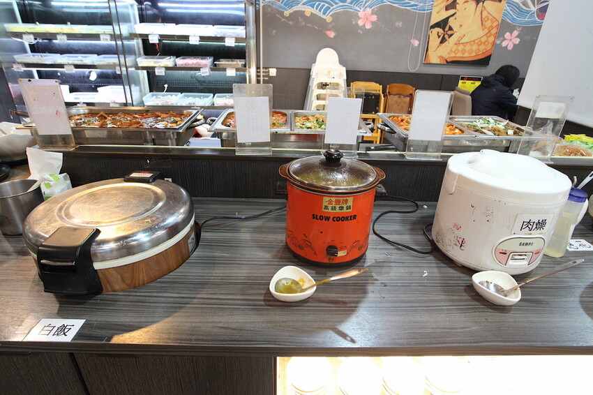 這檯面上提供各種熱炒餐食供客人選擇。
