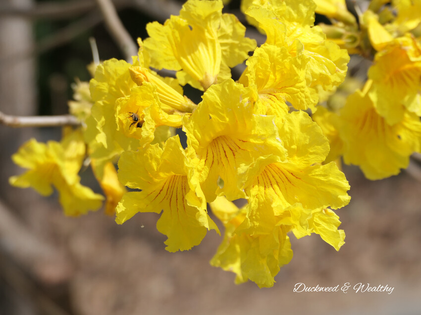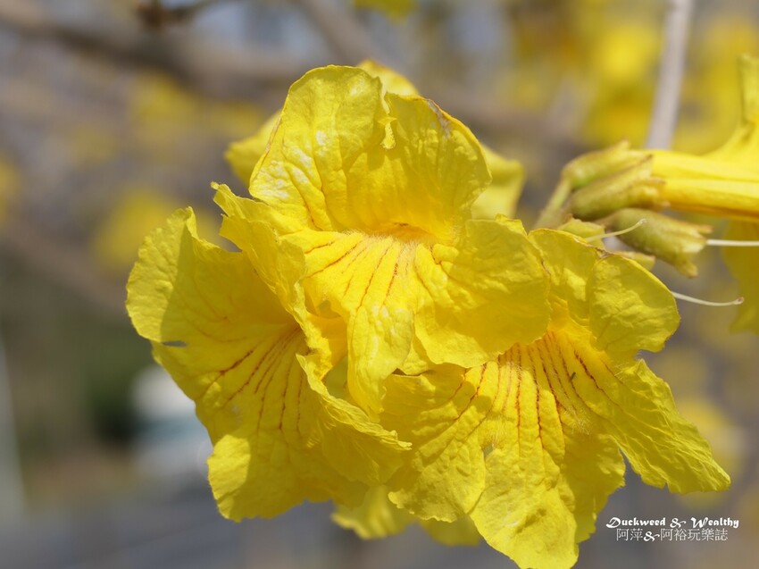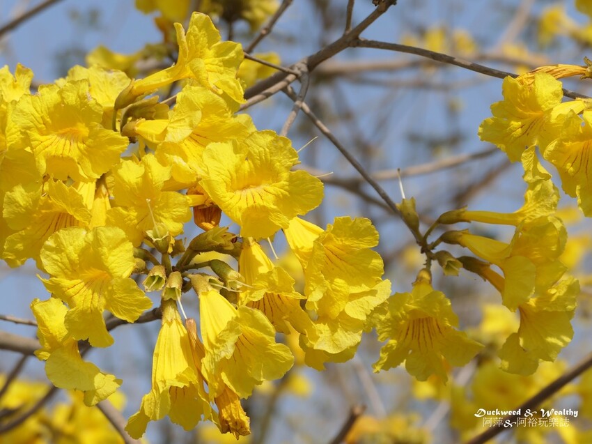 [黃花風鈴木]又名[黃花風鈴木],台南地區種植不少風鈴木,各個地方區域皆已一一盛開,
