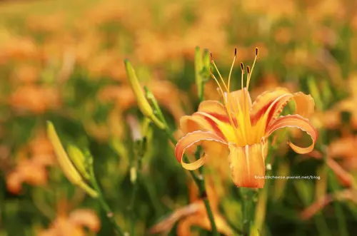 外婆跟老媽在棚子下乘涼觀賞,只有我們進去金針花海裡