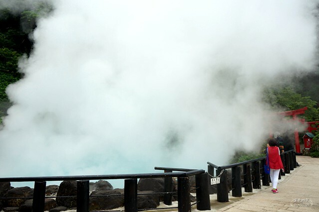 有沒有注意到,這一池的顏色,真的很像夢幻逸品 tiffany的藍色吧!!! 真的超夢幻的!! 這裏是別府8個地獄中面積最大的,泉溫有98度!