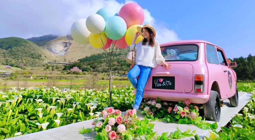 ★全文分享★ 名陽匍休閒農莊》海芋花海裡粉紅小車、木藤鞦韆超夢幻~療癒系打卡點一次收集|台北北投陽明山竹子湖景點