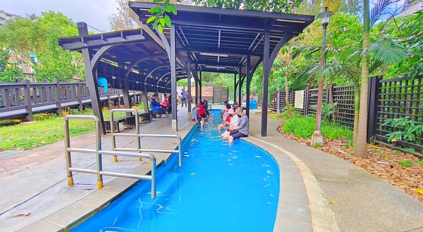 ★全文分享★ 泉源公園溫泉泡腳池(免門票)世界唯二含有鐳元素的青磺泉,北投三大免費泡腳池中溫度最高的足湯,享受透明無色鐳泉,順遊磺港溪林蔭小徑散步~舒心又愜意