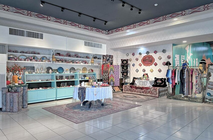 而在這購物商城的一角也有販售著新疆的服飾、帽子、裝飾品等,他們也貼心的設計規劃拍照區,讓遊客可以坐在這打卡拍照。