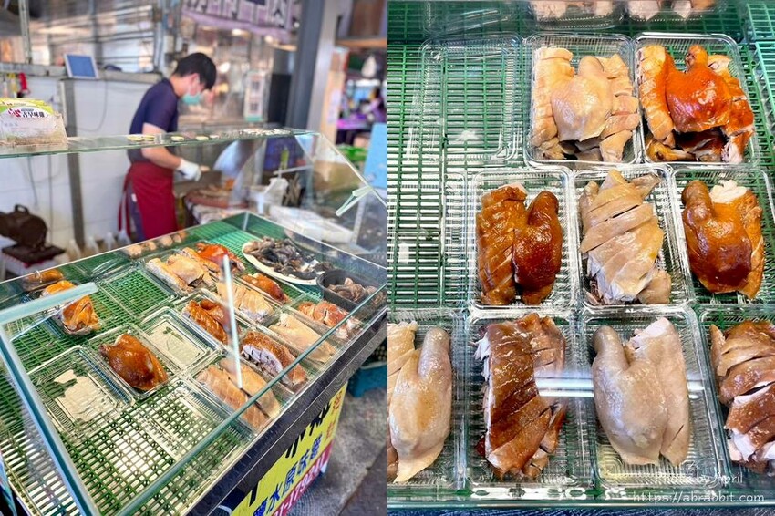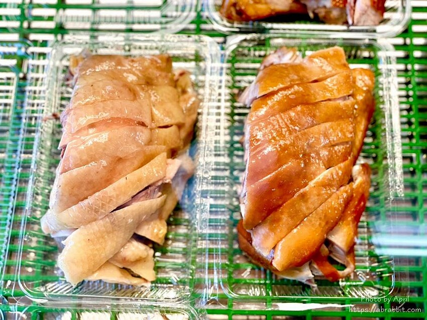 沁古早味甘蔗雞有賣兩種雞肉,一種是顏色比較深、有煙燻香氣的甘蔗雞;另一款是顏色比較淡、原味也超好吃的鹽水雞。