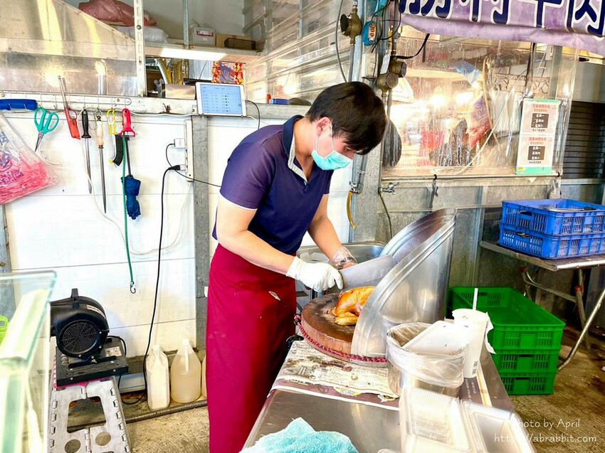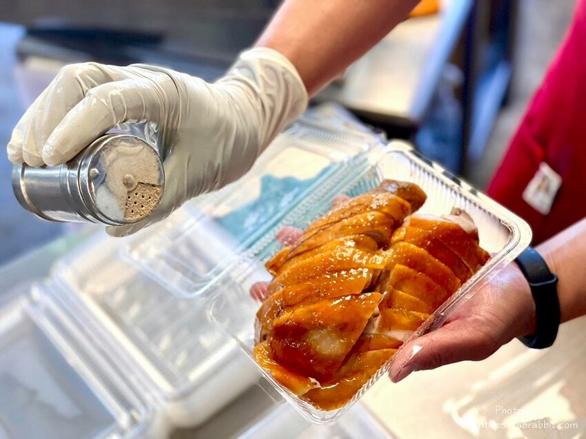 順便跟大家報告,我跟兔媽偷偷觀察到的小秘密!上面這張照片我是隔著檯面的玻璃窗拍攝的,是不是依然清楚得看到雞肉?代表什麼?代表店家非常重視衛生、而且檯面保持超乾淨,沁古早味甘蔗雞的攤位靠近外圍而且鄰近風口處,竟然檯面一塵不染,這不是單靠一兩天的打掃,而是每天勤勞清潔的結果。
