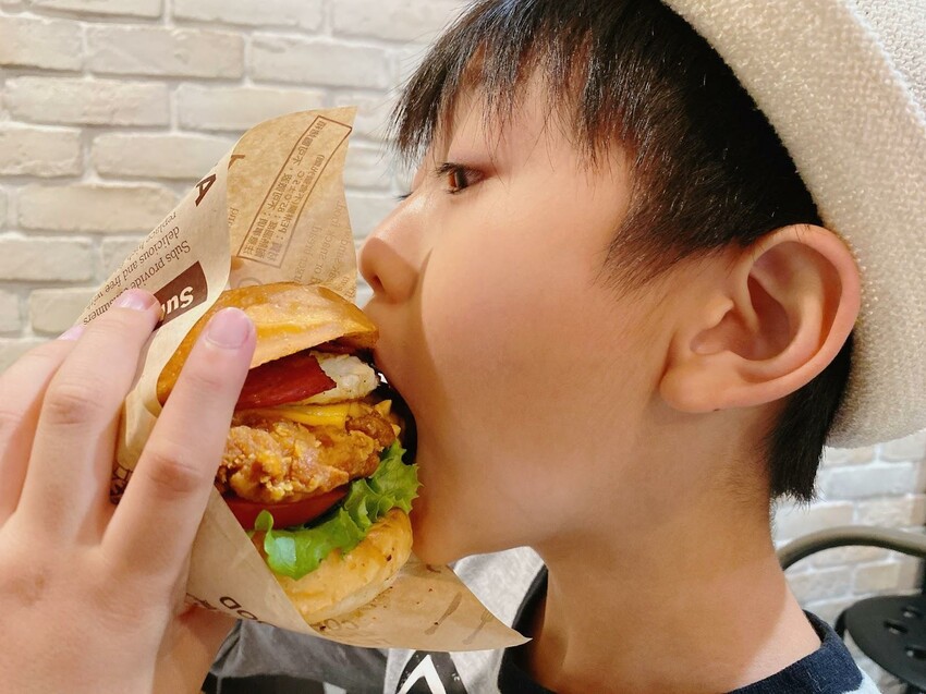 花醬培根轟炸雞漢堡的夾層未免也太豐富了~