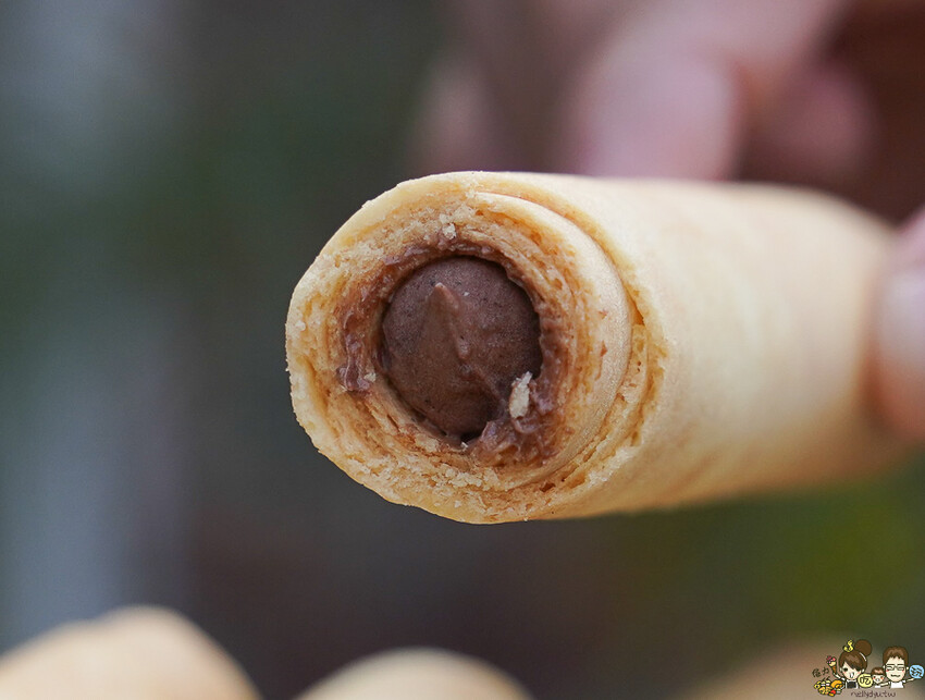 巧克力滋味格外討喜,香甜巧克力、入口滑順帶出巧克力甜味,滋潤手工蛋捲