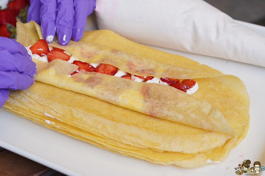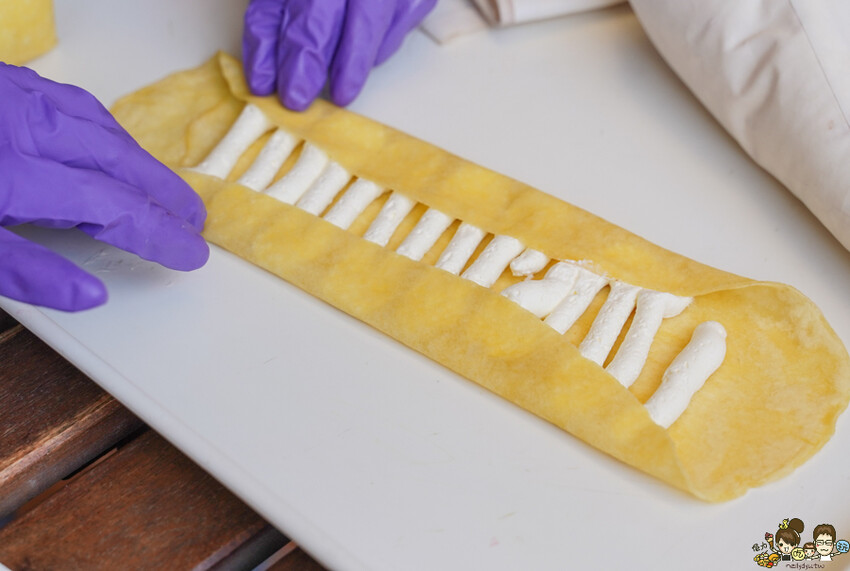 而且鮮奶油會滋潤蛋捲皮,特製蛋捲皮帶濕潤與軟Q口感