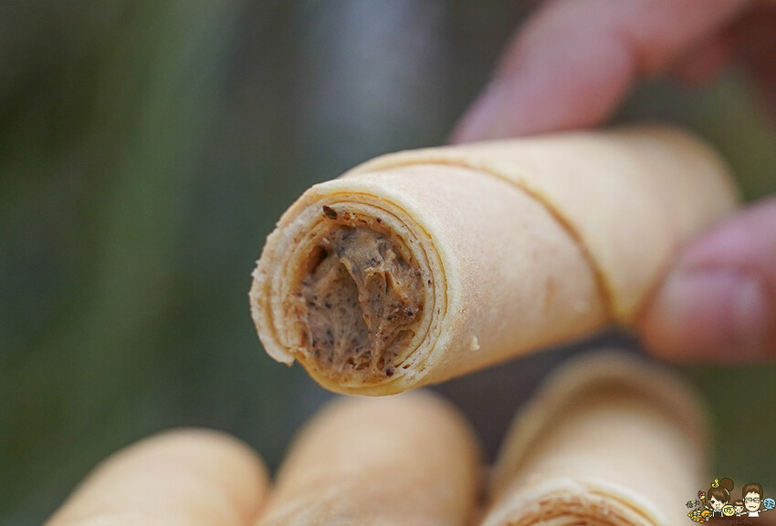 可以清晰的看到蛋捲的捲度紋路,帶有厚實度、口感真的比較扎實又酥脆
