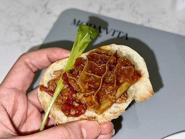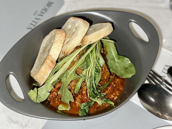 燉牛肚的肉醬單吃或沾麵包都很好吃,