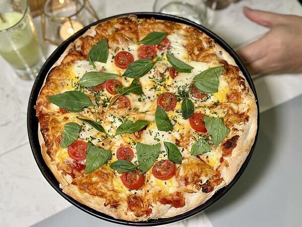 有番茄醬、莫扎瑞拉起司、和羅勒,