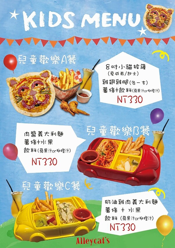由於很多家長喜歡帶著小孩來Alleycat’s用餐,因此他們也有提供兒童餐👨👩👧👦