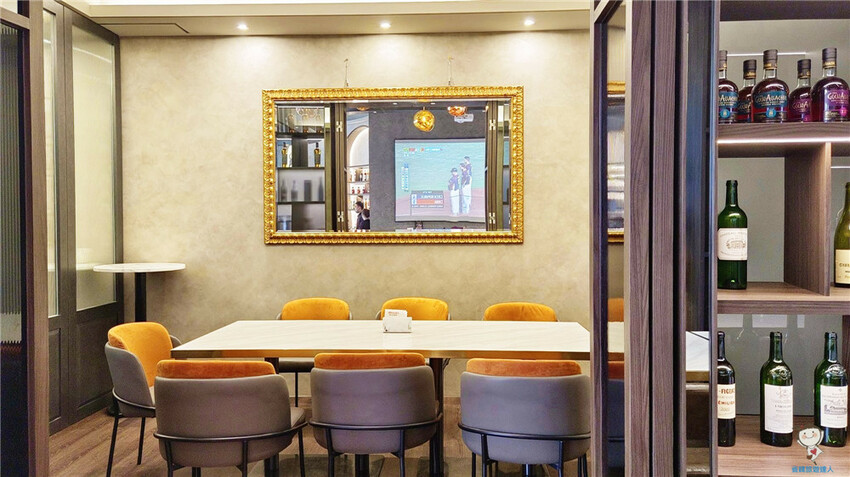 這邊的是適合6~8人座的小包廂,透過大鏡子還能看見投影銀幕的反射