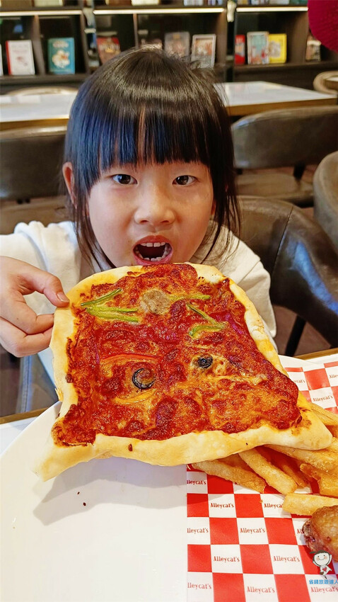 想不到披薩還能烤出貓臉的形狀吧?Alleycat’s的創意真是叫人佩服😻