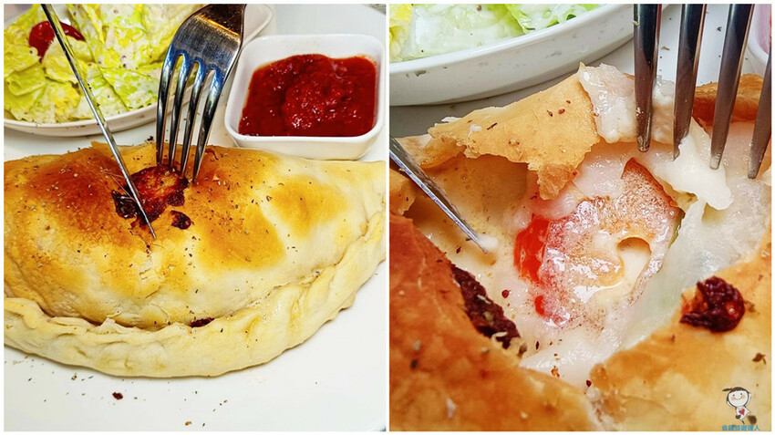 看起來像超大顆煎餃的,其實是義式半月型派餅,也是來此推薦必點的美食