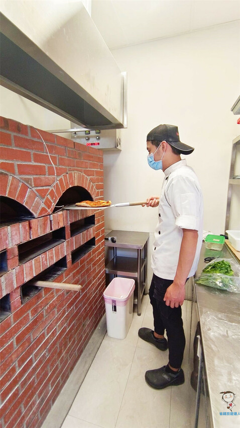 用大鐵盤將披薩鏟進去烤,出爐後就是香噴噴的義式披薩了🍕