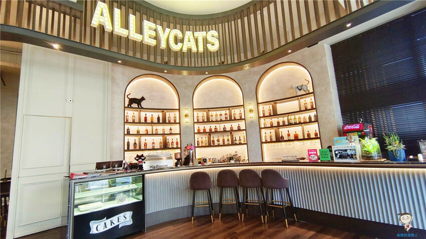 坐落在人行道旁的Alleycat’s ,外觀都是明亮的玻璃帷幕,看起來既時尚又透著大器