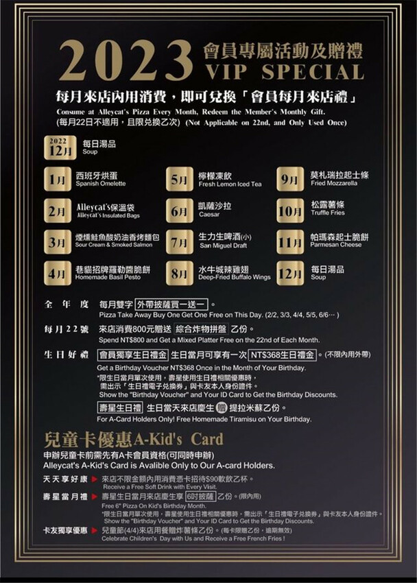 2023的每個月都有不同的來店禮,壽星生日當月可享$368生日禮金🤑