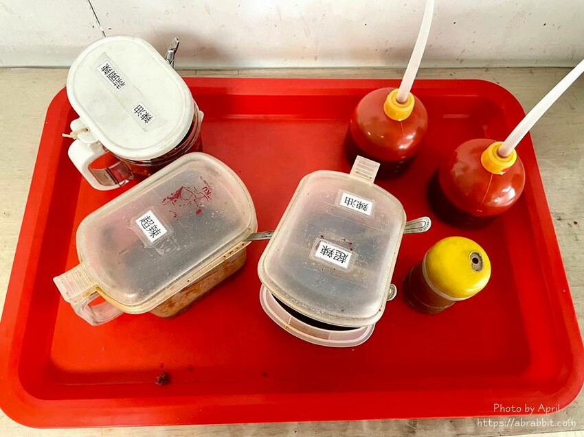 接著加入特調的沙茶醬,和一旁的料,就完成啦!店家的辣椒也有很多不同的選擇,有辣油、蒜頭辣、超辣等等,可以依照自己的喜好來選擇辣度。
