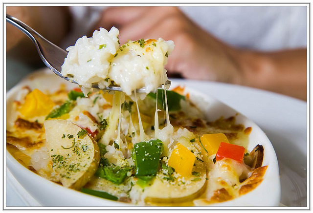 焗烤的那層焦焦的脆脆的,還有撒上起士粉,因此一上桌就讓人肚子咕咕叫。
