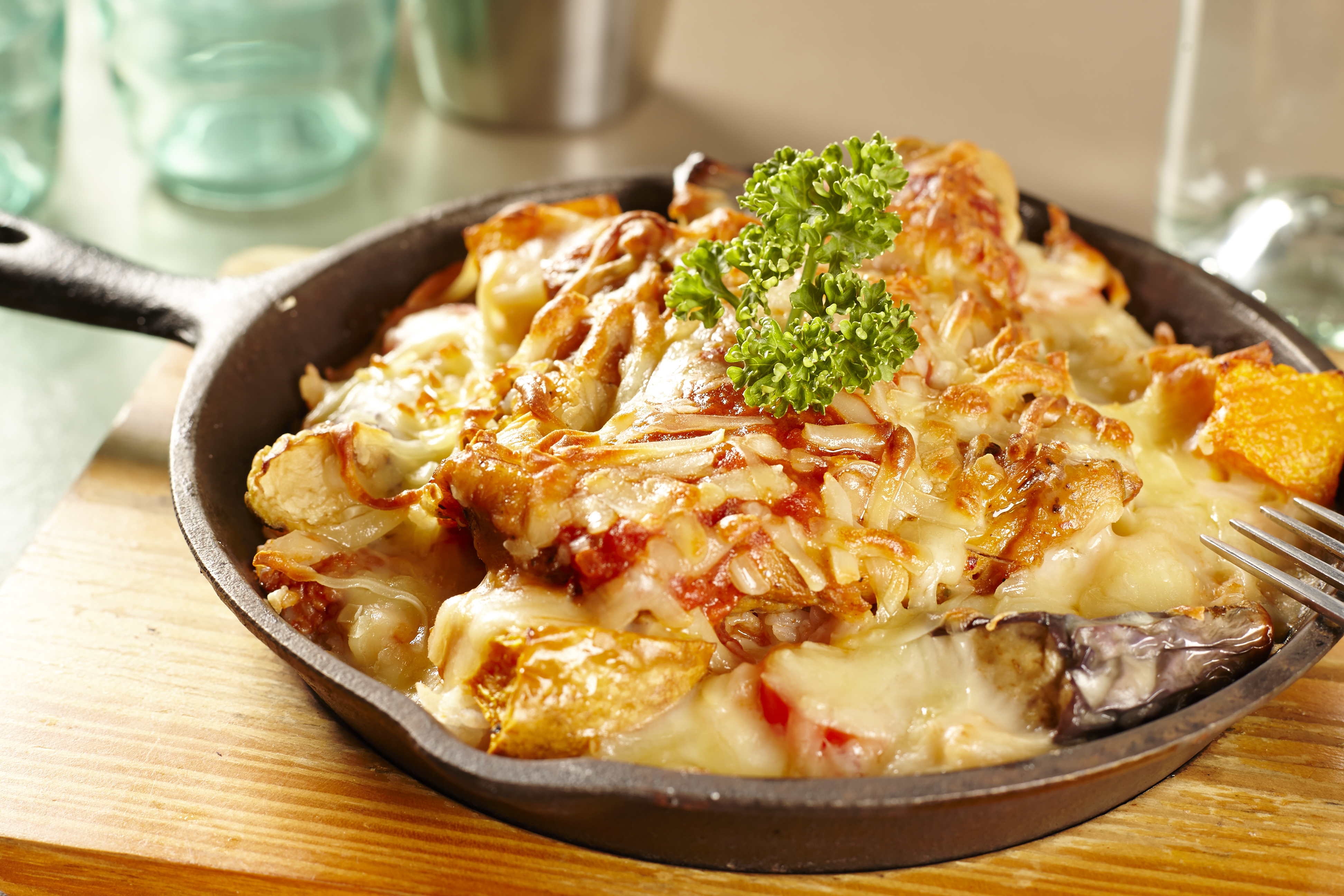 嚴選義大利進口香料醃製豐腴軟嫩的雞腿肉,以番茄肉醬為醬汁基底,醬汁精華融合在雞肉裡,加入新鮮時蔬,南瓜、茄子、小番茄帶出蔬食的鮮甜美味。