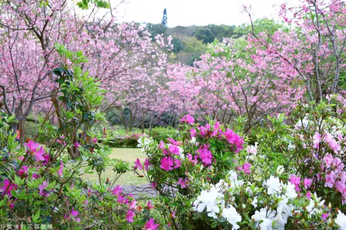 陽明公園雖然進入櫻花花季尾聲.但目前🌸櫻花跟🌺杜鵑花齊開很美唷!