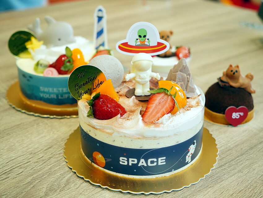 ▼這次85度C推出的兒童節蛋糕主題為「太空 FUN 樂園」,一共有太空漫遊(470元/6吋)、海洋奇緣(460元/6吋)、泰迪寶寶(75元/切片)、天生我柴(67元/切片)等四款造型蛋糕,不管是6吋還是個人獨享通通有,份量剛好,完全不用擔心會吃不完;而且這四款兒童節蛋糕都很適合當作派對蛋糕,大家可以依照人數多寡來挑選,還有多元的造型可供選擇,擺出來整個加分不少!