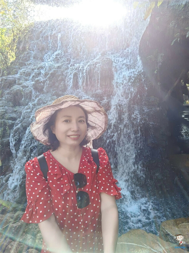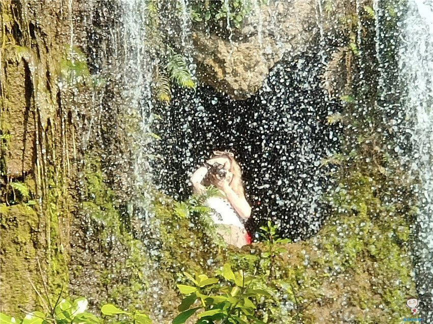 趕快站在瀑布前自拍一張,四處飛濺的水花,拍起來隱約透著天使光