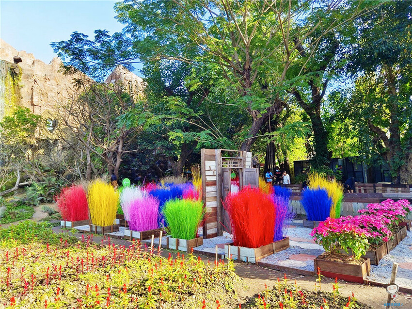 比如這扇木門,周遭都是漆成五彩繽紛的乾草,每個人都拍得不亦樂乎🤳