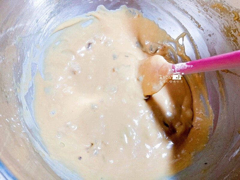 融入沙拉油的麵糊看起來細緻而且有光澤
