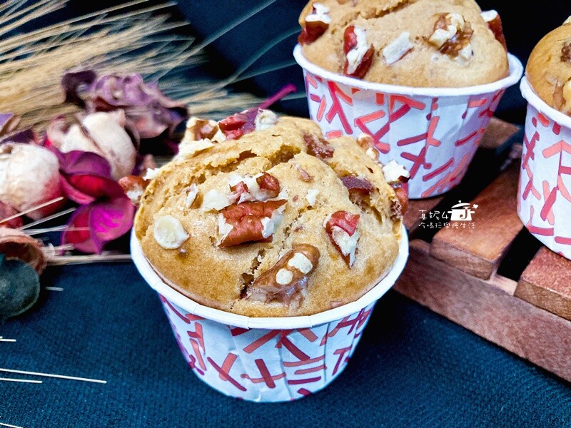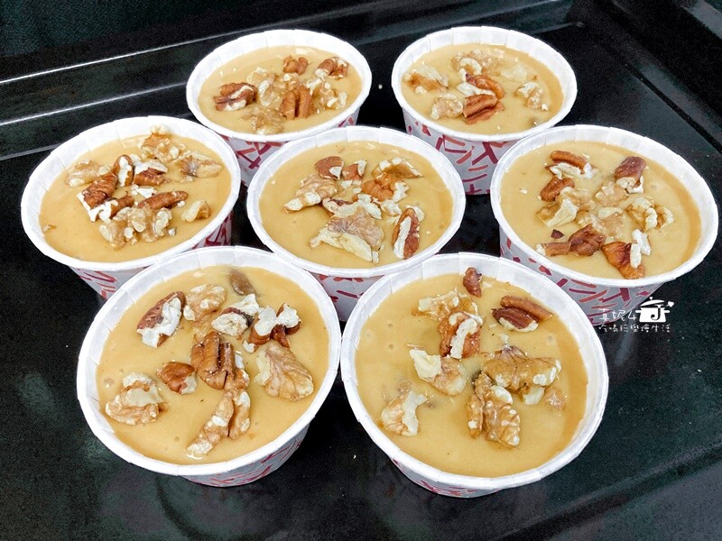 每杯裝8~9分滿,我準備7個紙模每一杯裝了85g的麵糊