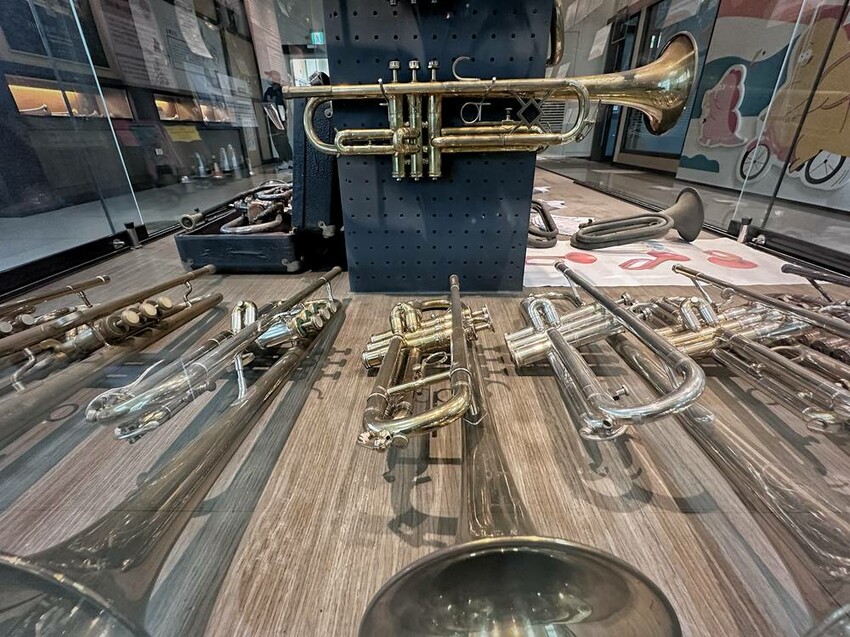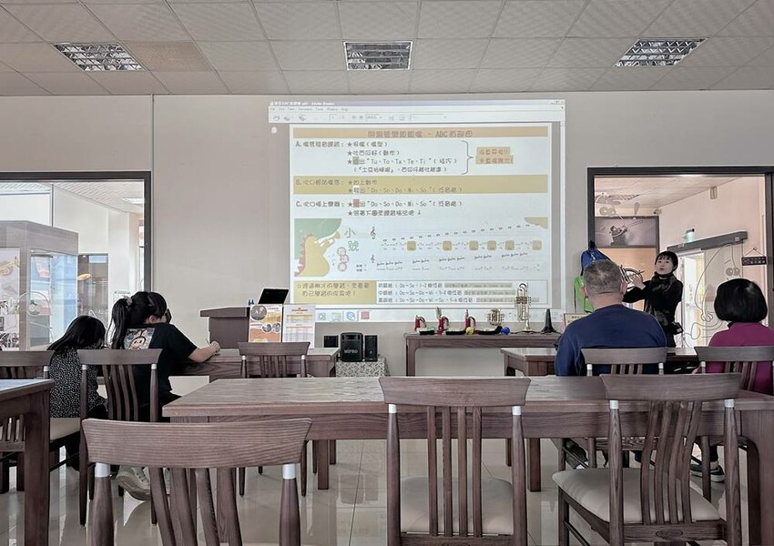 在二樓還有個銅管樂器博物館,在這展示了許多具有特色的樂器古董,還有銅管樂器的時代背景與脈絡等,讓大家可透過銅管樂器發展,了解銅管樂器的相關知識等。而這天來訪恰巧可以到博物館旁的小教室內上課,時間不會太冗長,導覽人員會用不少影片讓大家淺顯易懂的進去到銅管樂器的世界內喔!