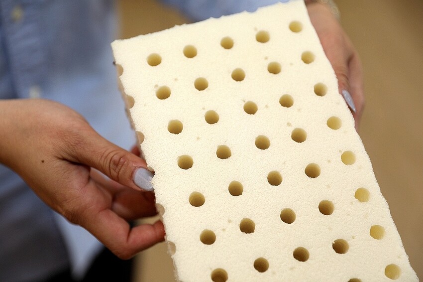 現場提供了製作乳膠床墊的樣品 能實際摸摸看 感受它的舒適性