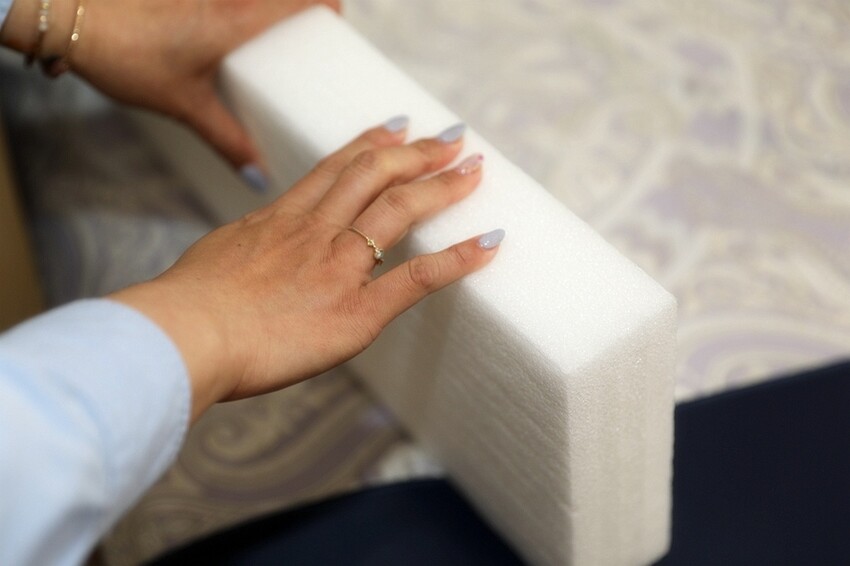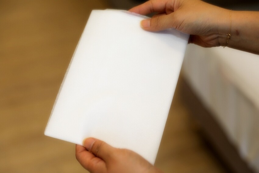 橘家床墊四邊都有貼上這種透氣環保材質的EPE泡棉當床墊防撞材質