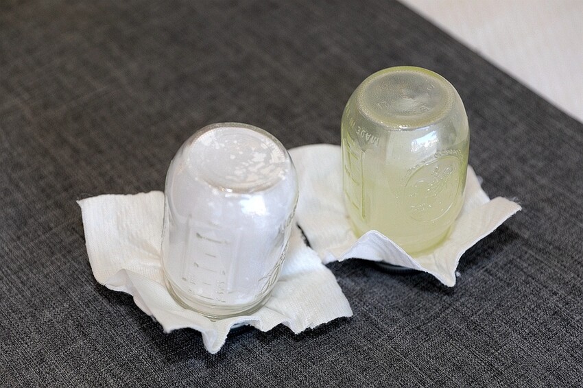 現場有兩個實際測試樣品 一個是水 一個是爽身粉將瓶子朝下