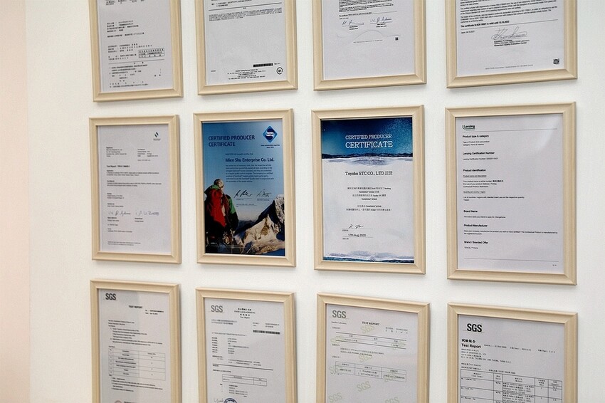 牆面上還貼著國際歐盟無毒認證及SGS認證....等