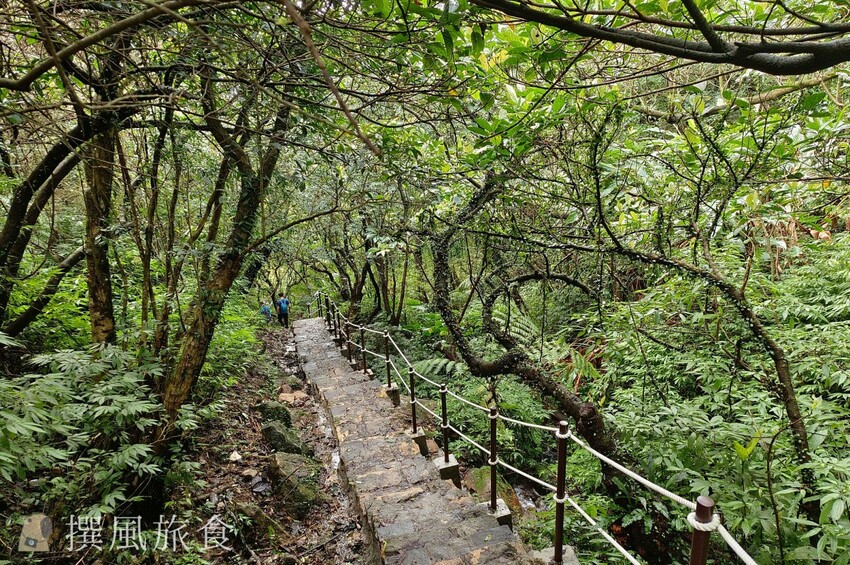台北大縱走第四段直接接續自台北大縱走第三段,因為風櫃嘴的公車站車次較少,時間上也還夠,因此走完第三段後就直接繼續完成第四段,順便下山。本次撰風採用順走,從陽明山下山後由風櫃嘴出發,入口處屬於石板步道,林蔭茂密,非常舒服,不過後面接續雙溪溝古道沿溪水走,路面容易濕滑,因此此段建議穿防滑的鞋子並帶登山杖增加著力點。
