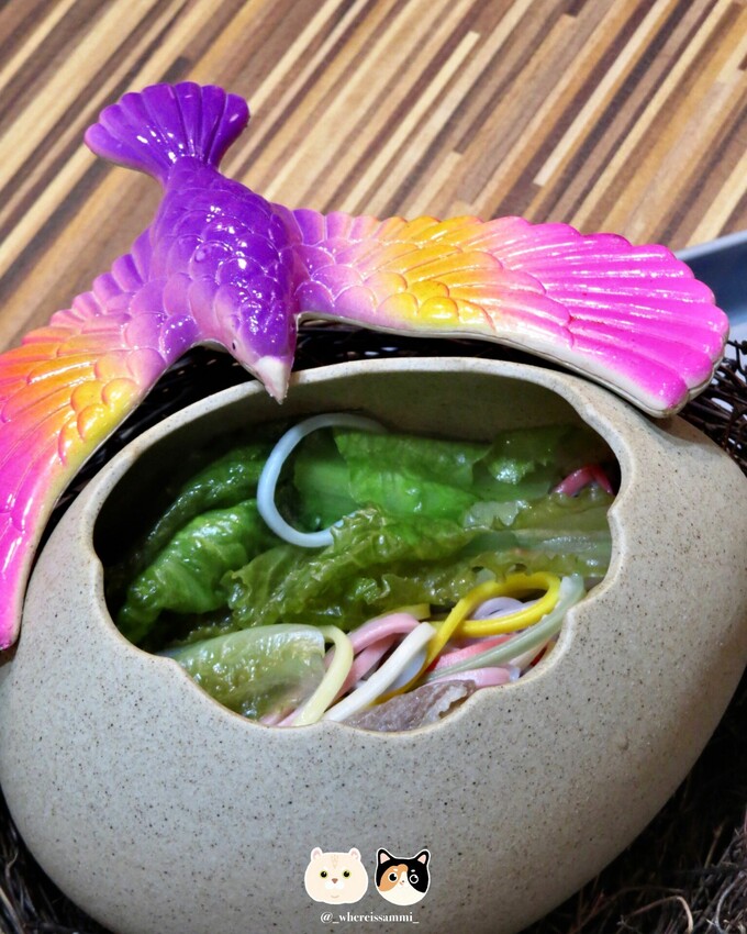 很特別的是店家用了鳥蛋造型的碗來裝面