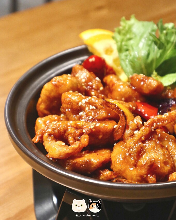 外層炸至酥脆 裹上糖醋醬