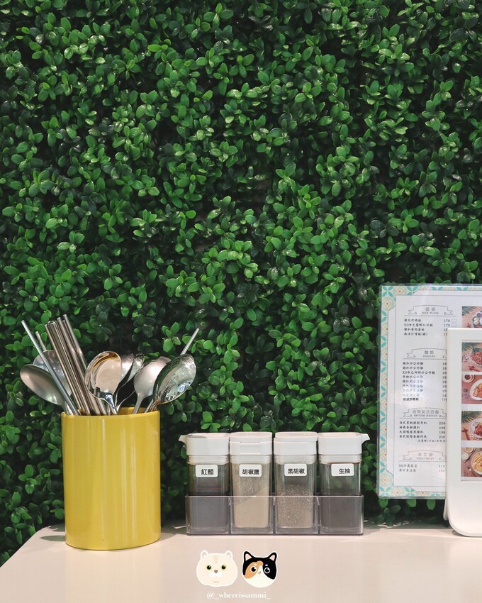 最特別的是鄰近點餐區的草木裝飾牆