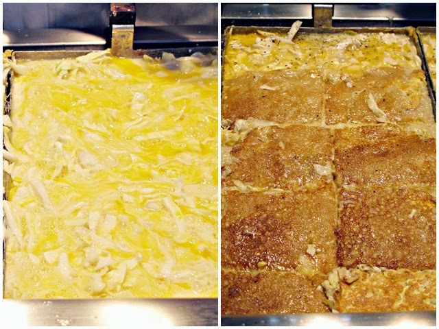 這次品全程看到師傅製作過程,他真的是手腳俐落無怪這麼好吃 ↓第一先在鐵板舖上滿滿高麗菜並灑上麵粉 ↓